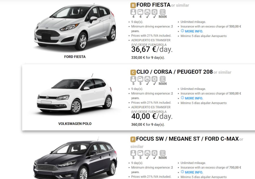 The vehicles of our Car Hire in Fuengirola